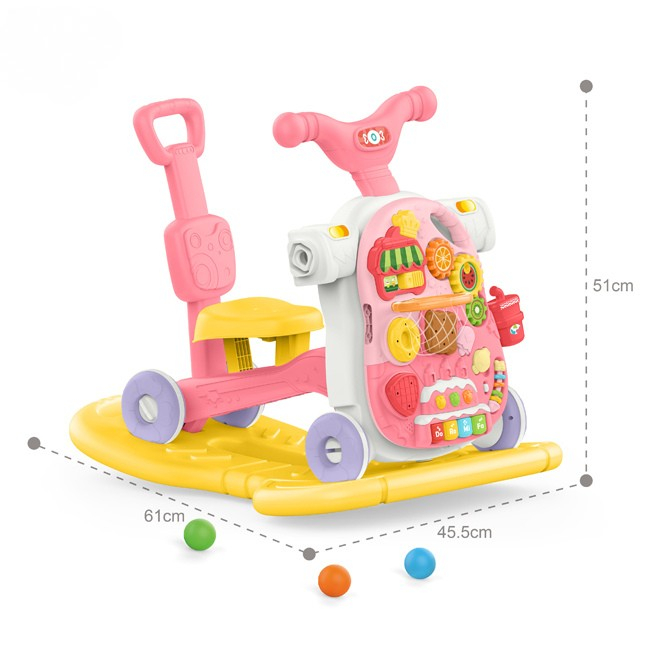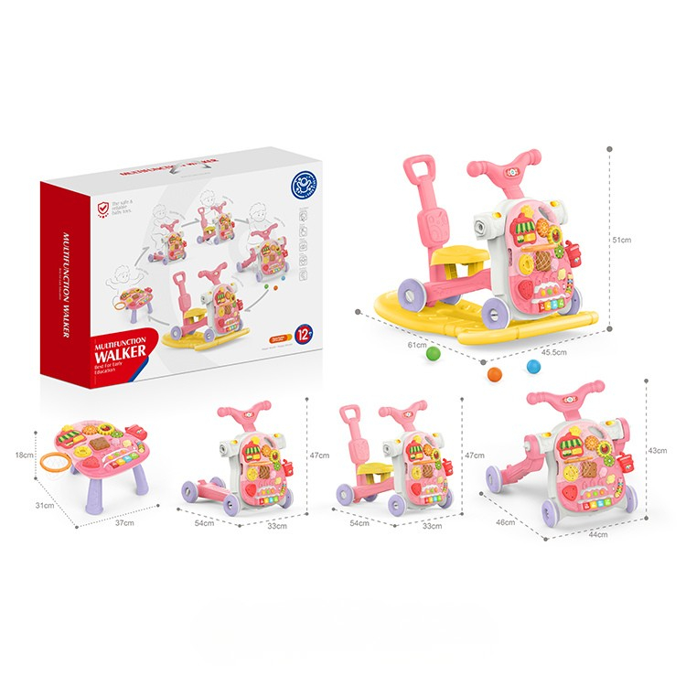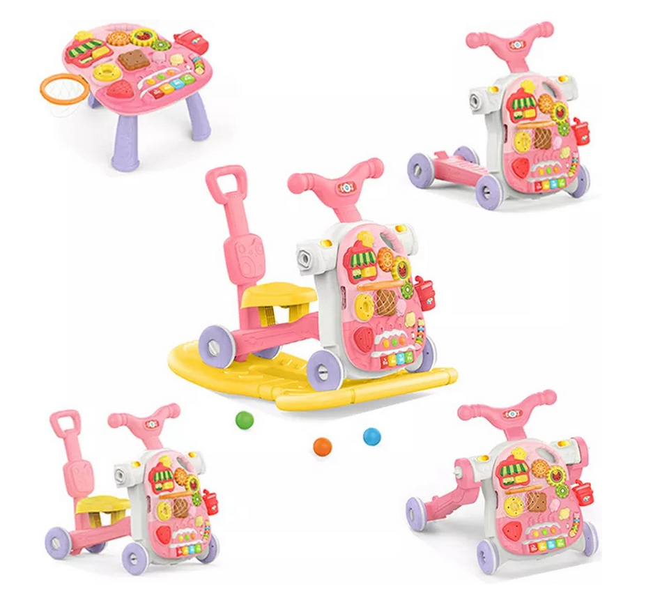 Antepremergător 5 în 1 cu masă de activități și jocuri educative – roz