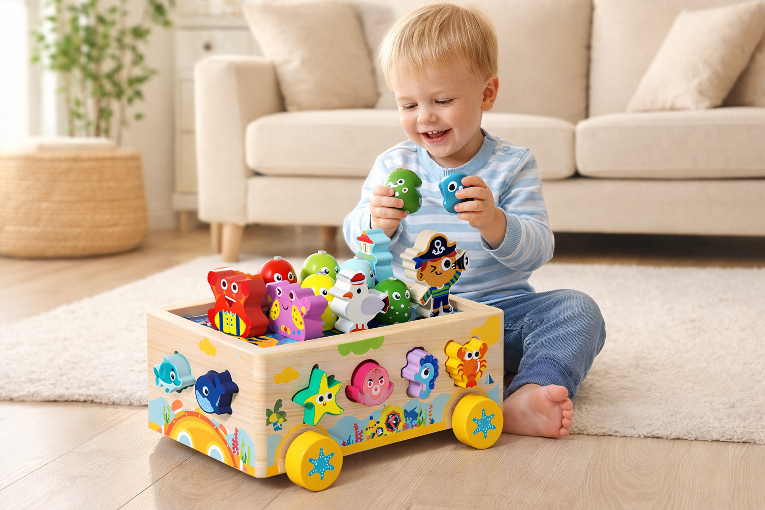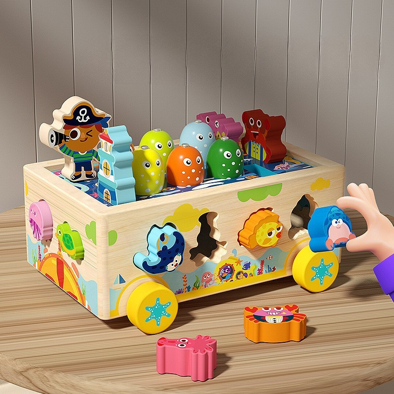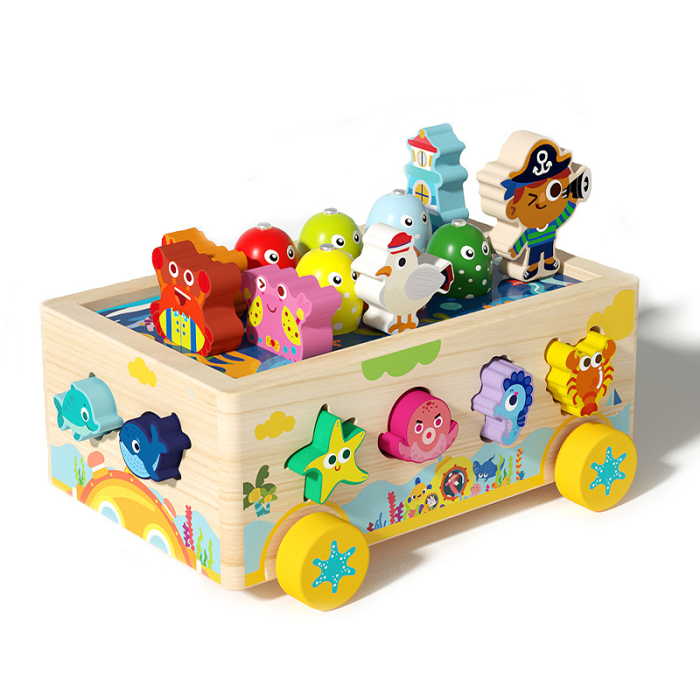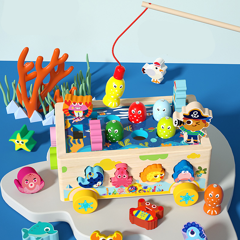 Mașinuță din lemn cu activități de pescuit magnetic – Pirații și lumea subacvatică