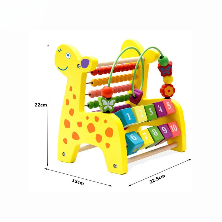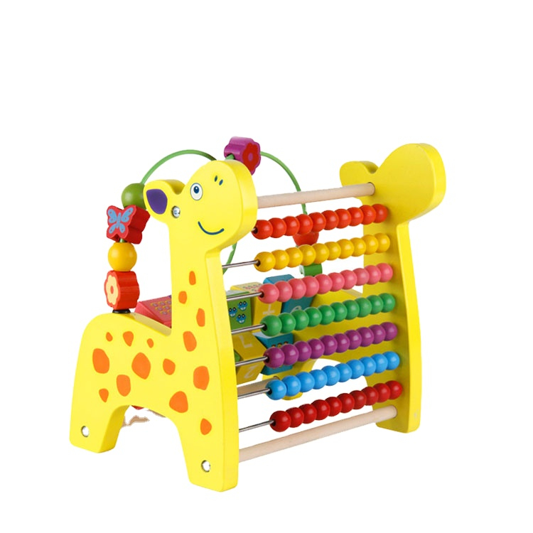 Panou educativ din lemn cu mărgele–calculator și activități interactive pentru copii