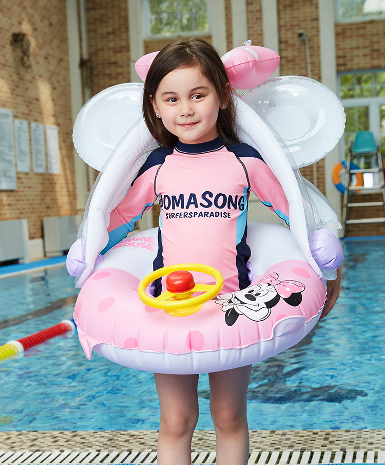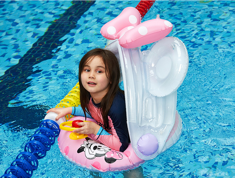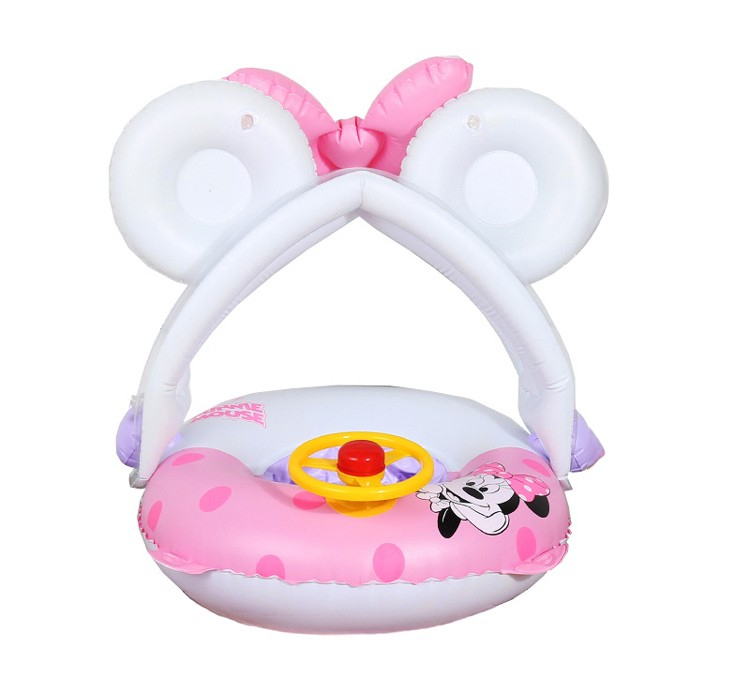 Colac bărcuță gonflabilă pentru copii cu parasolar și volan Minnie
