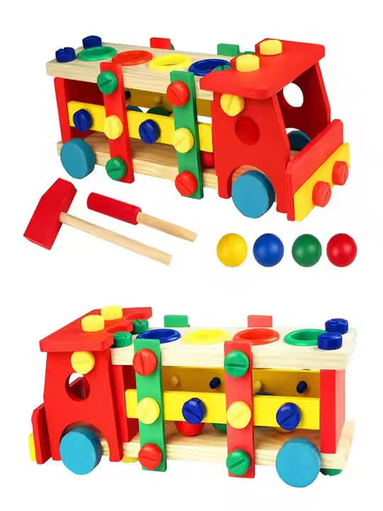 Camion multifuncțional 2-în-1 din lemn – rol play și sortare | ZukiToys.ro