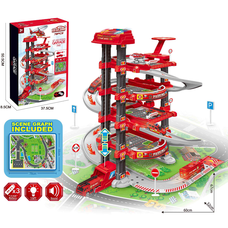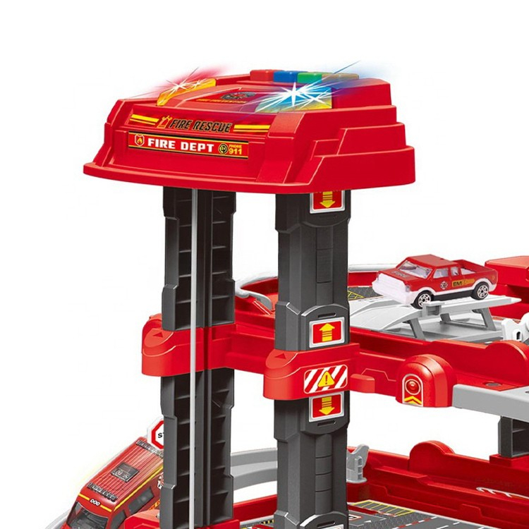 🚒 Joaca captivanta si educativa – parcare etajata cu tema pompieri, perfecta pentru ore intregi de distractie.