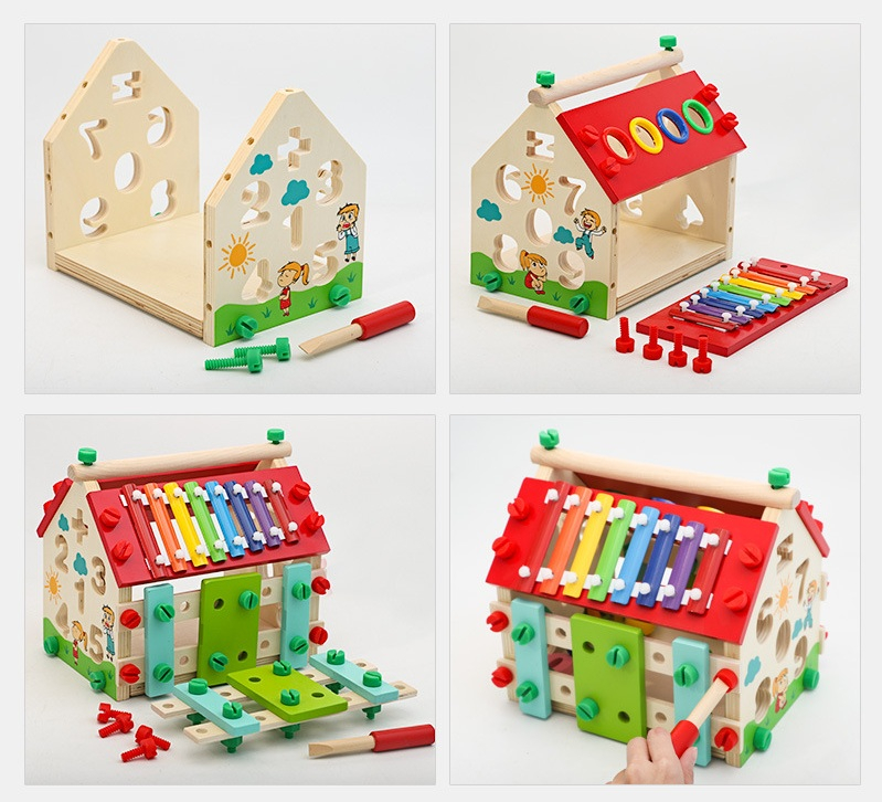 Jucarie educativa tip casuta din lemn, cu activitati multiple