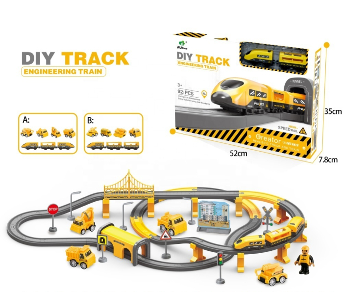• Set „Do It Yourself” cu 92 de piese ce permit construirea unui circuit de tren electric cu locomotivă, vagoane şi accesorii tematice.
