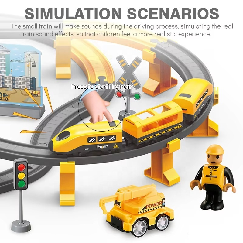 • Include sine de tren, vehicule de construcţie, semne rutiere, tuneluri, poduri – pentru o experienţă de joacă completă.