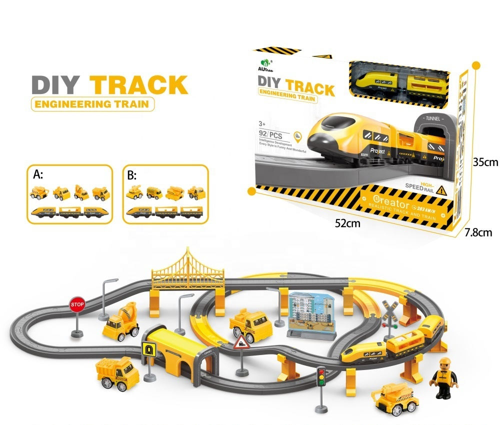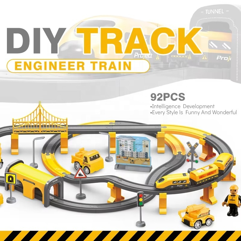 Circuit trenulet electric cu accesorii - constructii – 92 piese DIY 3+