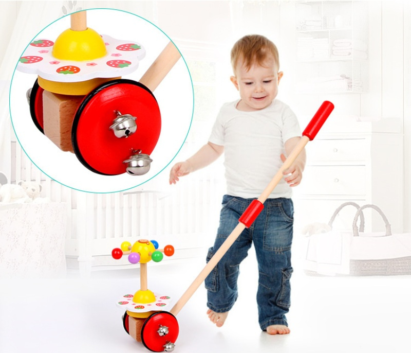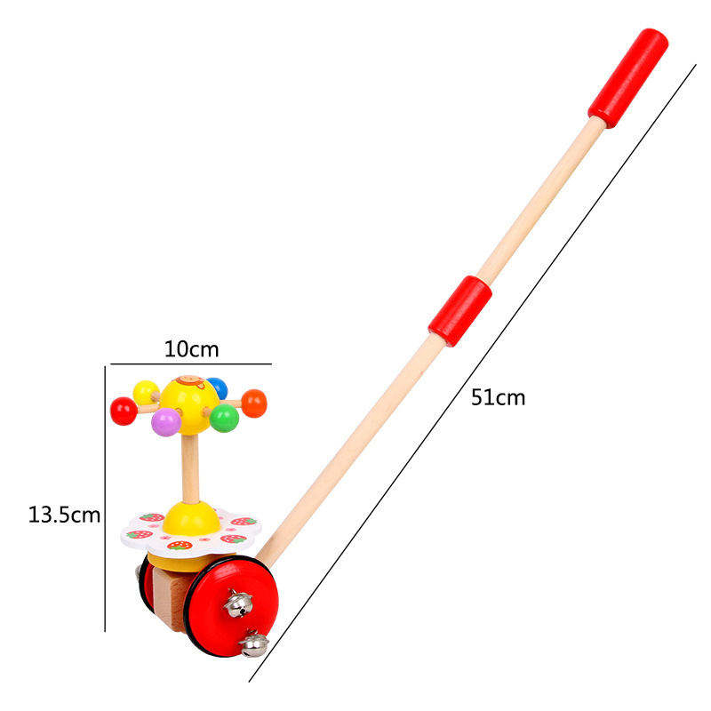 Jucărie de împins din lemn cu mecanism și sunete, jucărie motrică - Multicolor