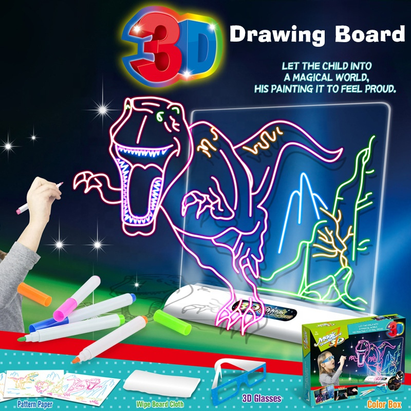 Include ochelari 3D care ofera copilului o experienta vizuala atractiva atunci când priveste desenul luminat.