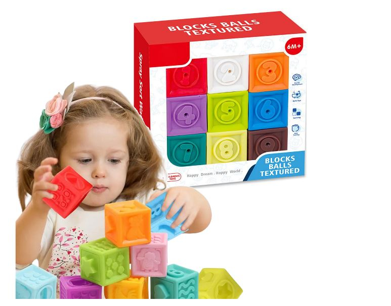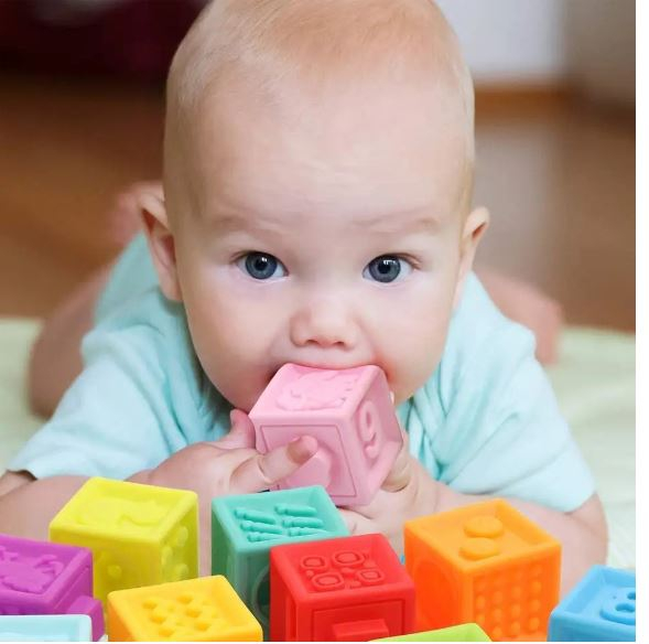 • cuburi moi și sigure, ideale pentru joaca și dentiția bebelușului