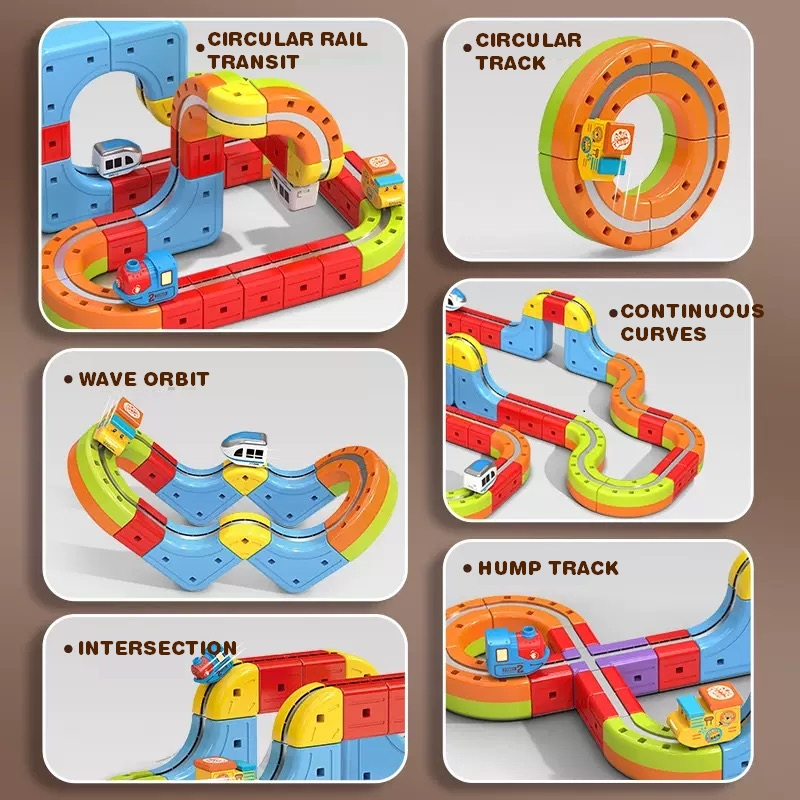 Set tren cu traseu magnetic si circuit 3D – 38 piese
