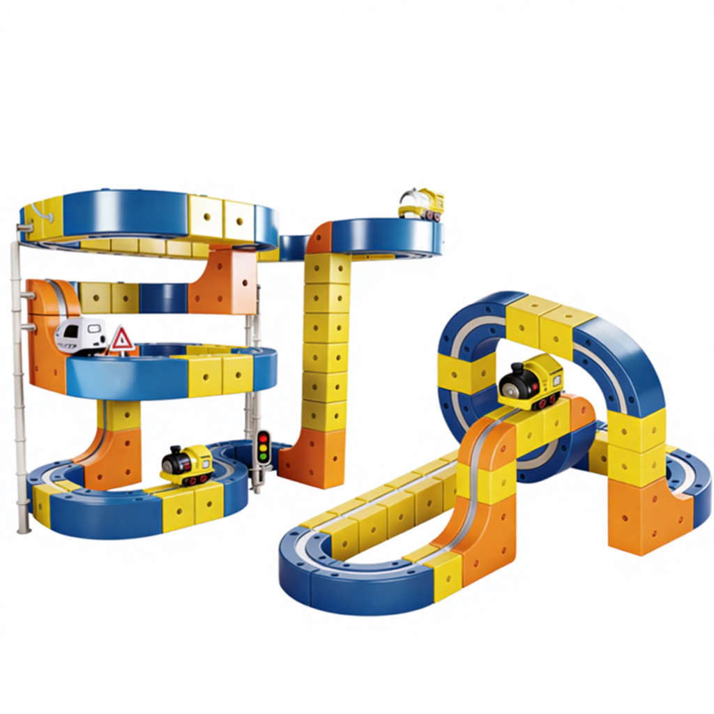 • combină joaca constructivă cu aventura unui tren în mișcare