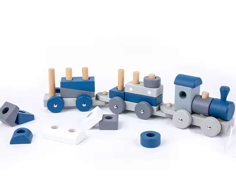 Trenulet lemn BLUE Montessori cu forme geometrice | ZukiToys.ro