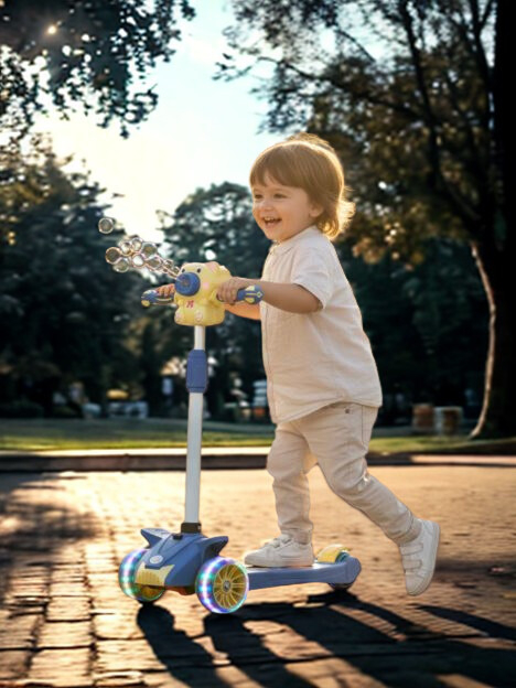Trotinetă copii cu muzică , lumini și baloane de săpun (albastra)