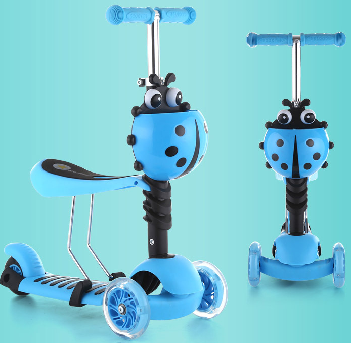 Sistem 3‑in‑1: trotineta initiala cu scaun, apoi trotineta standard